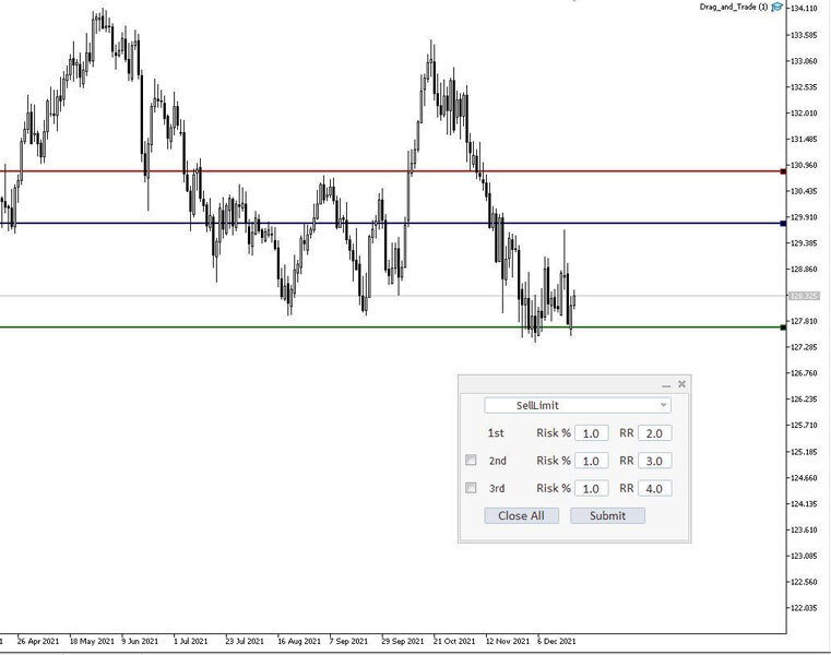 This on-terminal EA is an easy way to place market or pending orders with predefined risk. The EA calculates the lot size based on the risk and the entry & exit prices.
